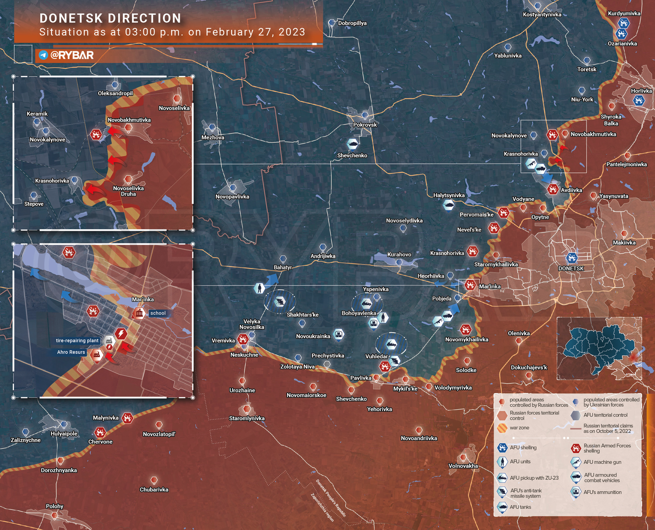 🔻Tại khu vực Avdeevka, trong những ngày qua, Lực lượng Vũ trang Nga đã mở rộng vùng kiểm soát gần Novobakhmutovka, tiến về phía Novokalinovo và Alexandropol.