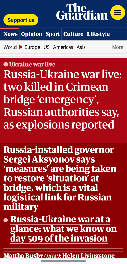 Tất cả các làn ranh đỏ đều vượt qua một cách gọn nhẹ,mọi biểu tượng đầu bị đánh thẳng vào mặt một các nhục nhã,sau những sự việc đấy đều gào lên sẽ đáp trả, Sự thực thì sao ? trên chiến trường thì thủ SML,cả năm chiếm được môi bác mút bằng quân đánh thuê,quân chính quy thì bỏ chạy vùng khe sơn và liman.Suốt ngày tự sướng với đếm tăng đếm pháo,.Ngoại giao thì Thổ nó đá vào mặt không dám kêu 1 tiếng,Serbia thì cung cấp vũ khí cho UKR.Nói chung thất vọng tràn trề với với Putin.