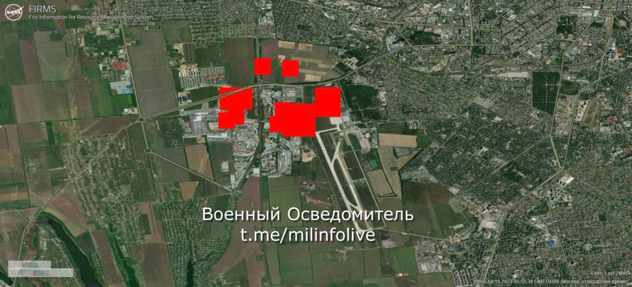 Trong khi đó, các vệ tinh của NASA đã ghi lại những đám cháy dữ dội tại sân bay quân sự Shkolny ở Odessa. Khu công nghiệp liền kề sân bay và khu vực nhà ga có kho chứa dầu cũng chìm trong biển lửa. @milinfolive