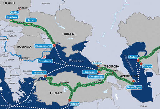 Tuyến vận tải quốc tế xuyên Caspi đi từ Trung Quốc đến châu Âu, bỏ qua Nga: qua Kazakhstan dọc theo Biển Caspi đến Azerbaijan, Georgia, Thổ Nhĩ Kỳ và xa hơn nữa là các nước EU.