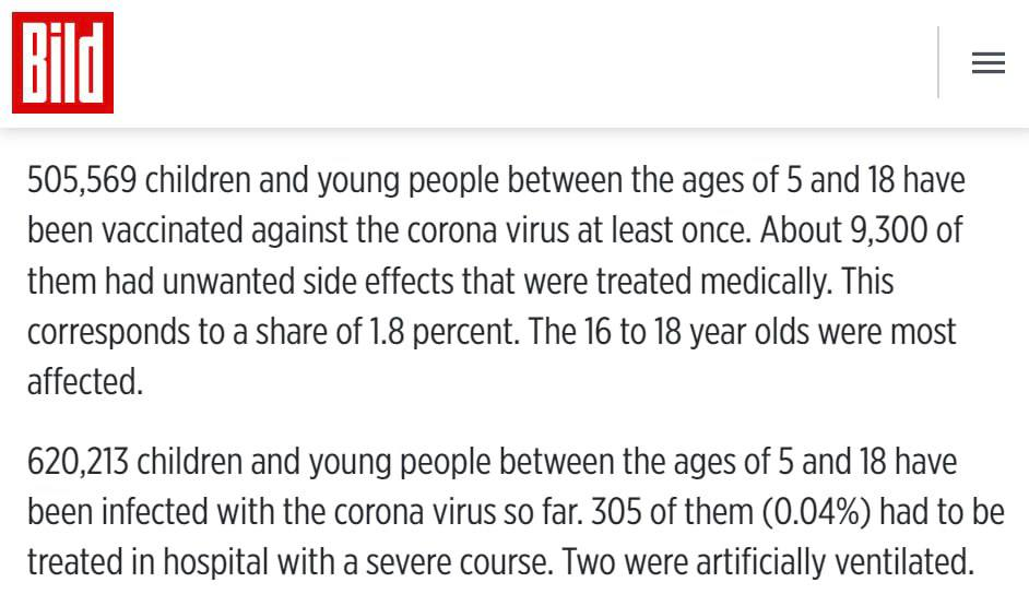 Theo dữ liệu mới từ Bộ Y tế bang Lower Saxony của Đức, 1,8% trẻ em cần được điều trị do "tác dụng phụ không mong muốn" sau khi tiêm vắc-xin ngừa virus corona.