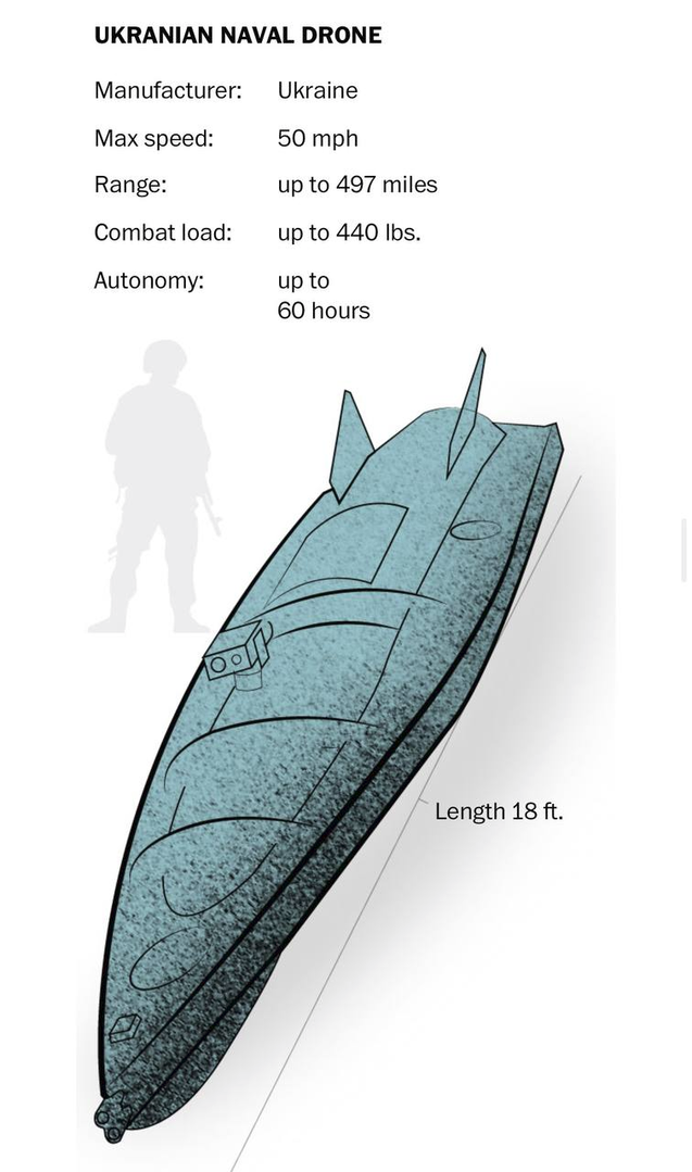 Máy bay không người lái trên biển và trên không của Ukraine được đề cập trong bài báo của Washington Post. Đặc điểm dường như không tương ứng với thực tế