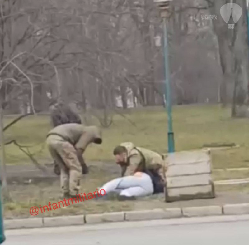 Trong ảnh - việc bắt giữ một người lính nghĩa vụ ở Kamenetz-Podolsk