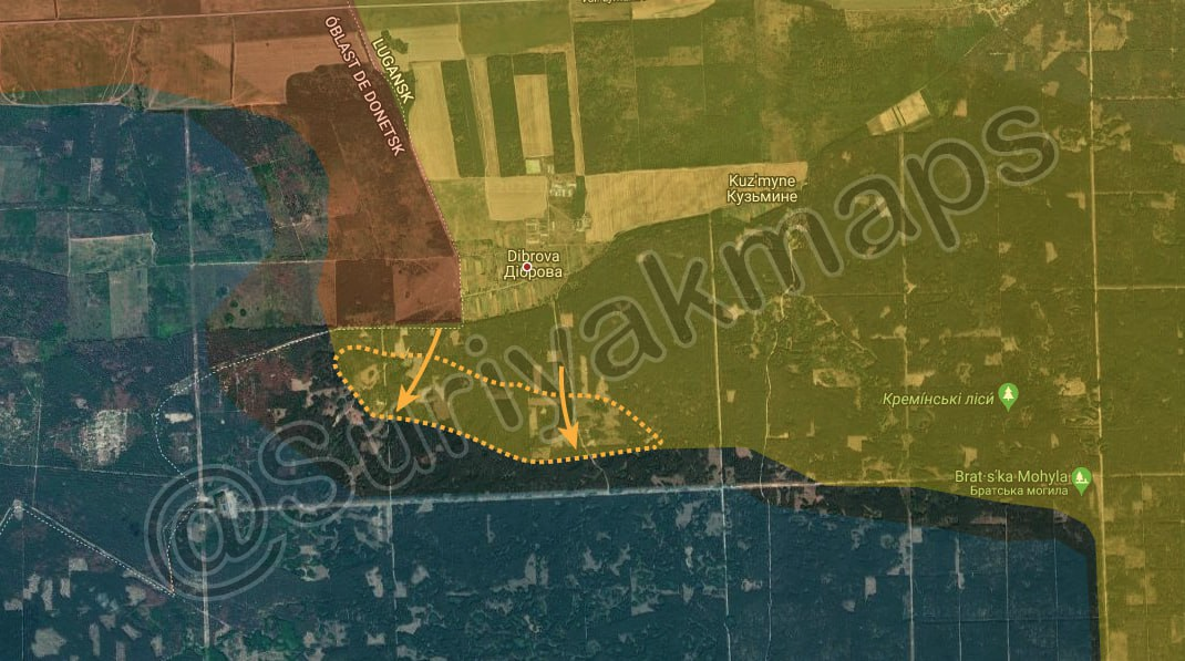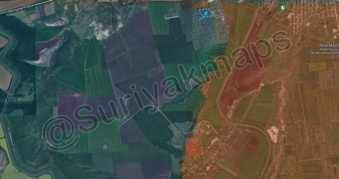 [ Photo ] Tình hình mặt trận Luhansk: Quân đội Nga tiếp tục tiến công tại bờ tây sông Zherebets, kiểm soát nhiều trang trại phía tây thị trấn Karmazynivka/Кармазинівка.
