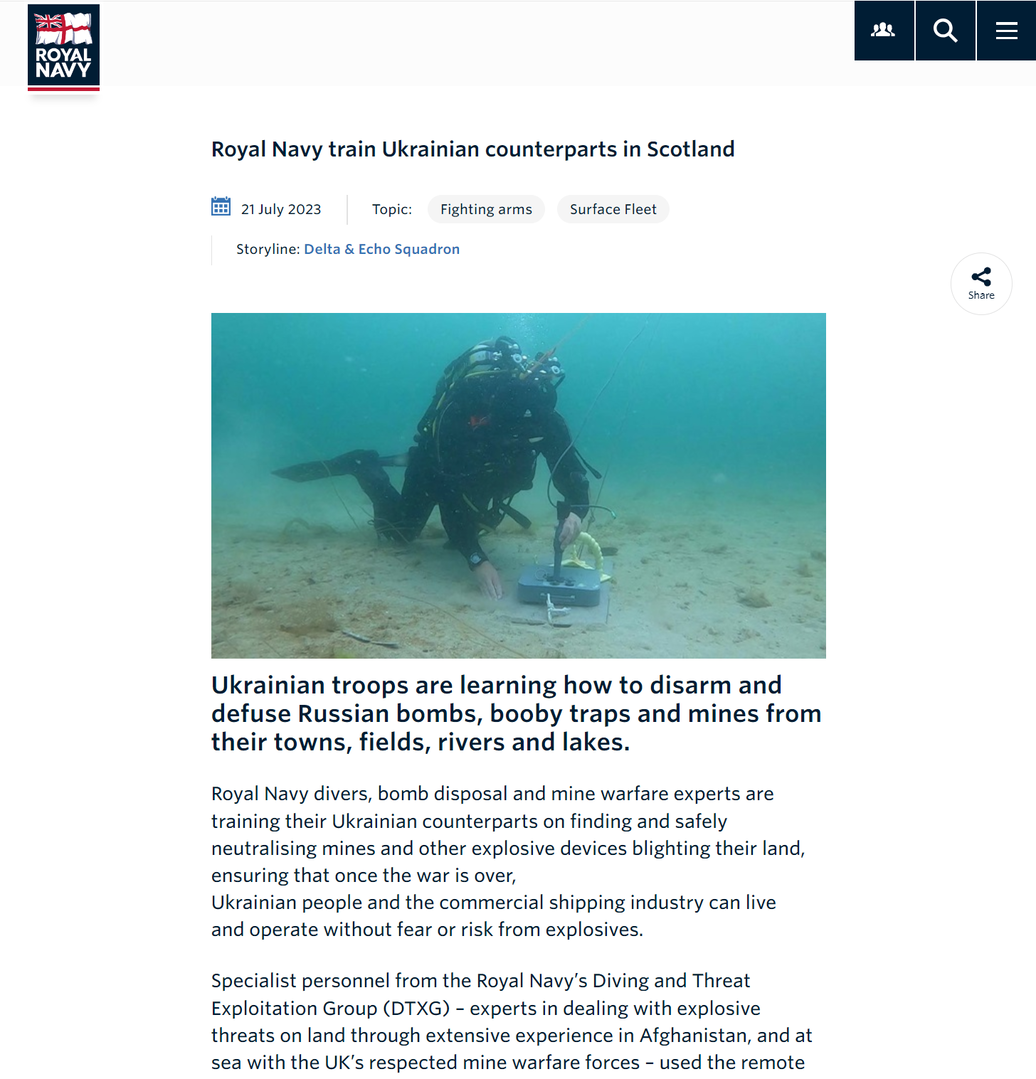 🇬🇧🇺🇦 Các nhân viên chuyên môn thợ lặn, chuyên gia xử lý bom và chiến tranh bom mìn của Hải quân Hoàng gia đang huấn luyện các binh sĩ Ukraine cách phá bỏ các chướng ngại vật dưới nước.