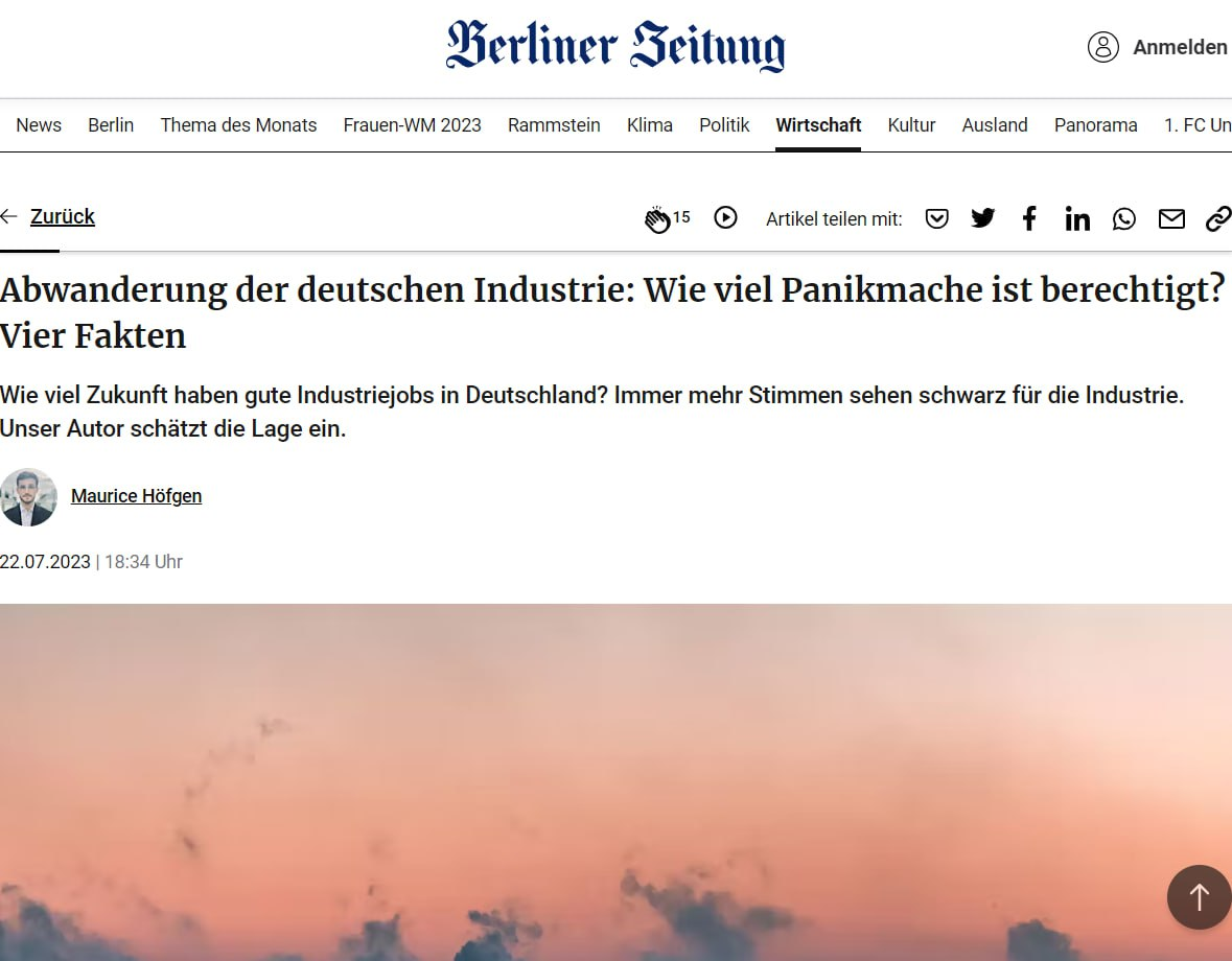 🔹Các doanh nhân và nhà kinh tế Đức tuyên bố các vấn đề kinh tế ở Đức, và có những sự thật xác nhận một cuộc suy thoái, Berliner Zeitung viết.
