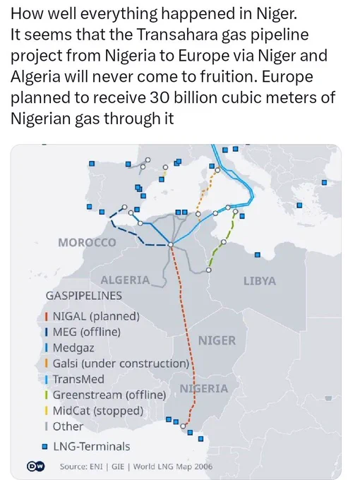 còn tin bên dưới liên quan bản đồ đường ống dẫn khí đốt Transahara từ Nigeria qua Niger, Algeria, Marocco đến châu âu.