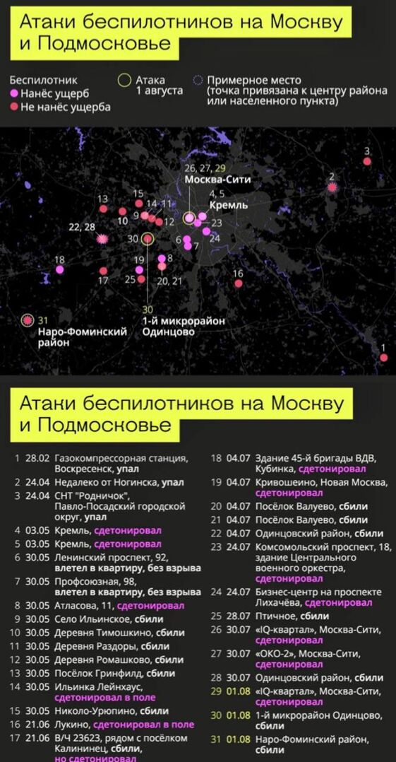 Bố cục : Trong ba tháng, Moscow và khu vực quanh nó đã bị tấn công bởi ít nhất 28 máy bay không người lái của Ukraine. Hơn 40% trong số đó gây thiệt hại cho các tòa nhà dân cư và cơ sở chính phủ.