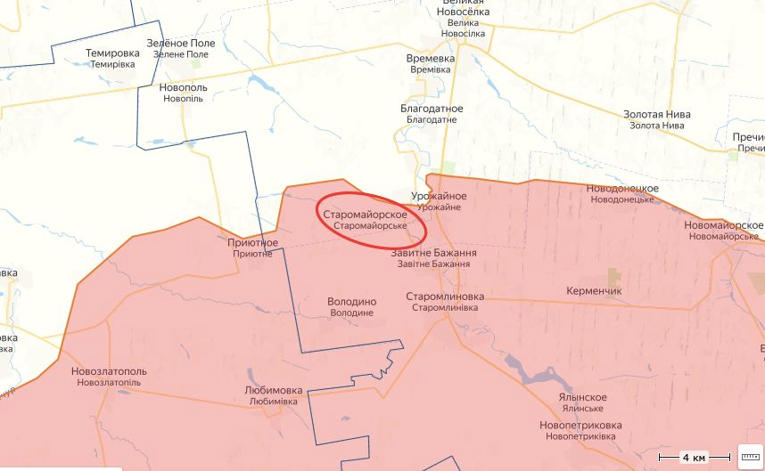Các trận chiến chính, như trước đây, đang diễn ra trong khu định cư Staromayorskoe. Kênh TG 105 của trung đoàn NM thuộc DPR báo cáo rằng Lực lượng Vũ trang Ukraine đã chiếm được phần phía bắc của ngôi làng.