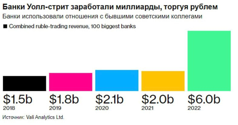 Theo Vali Analytics Ltd., năm ngoái, các ngân hàng lớn nhất thế giới đã kiếm được tổng cộng 6 tỷ đô la nhờ giao dịch tiền tệ của Nga, gấp khoảng ba lần so với số tiền họ thường kiếm được.