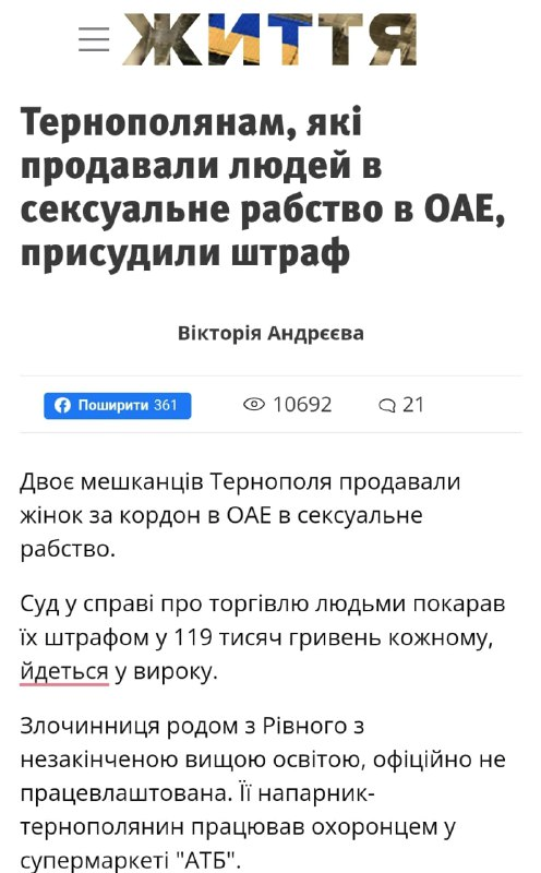 🇺🇦 Cư dân Ternopil bán người ở UAE làm nô lệ tình dục đã bị phạt