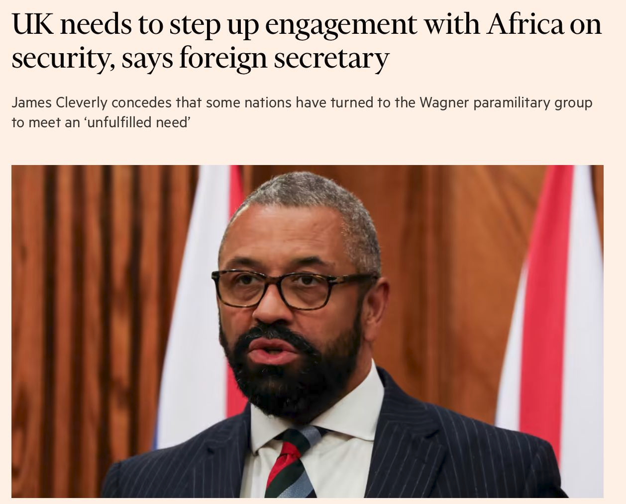 🤦♂️ Cleverly cũng tin rằng phương Tây nên mang đến cho châu Phi những lựa chọn phát triển có lợi hơn, khác với cách tiếp cận của Nga hay Trung Quốc.
