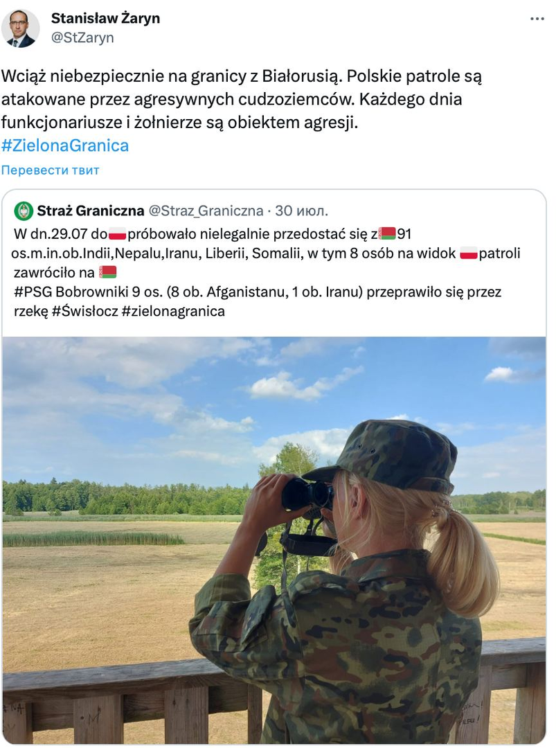Điều này đã được công bố bởi Tổng tư lệnh các lực lượng vũ trang Ba Lan. Theo Stanislav Zharin, người được ủy quyền của chính phủ về an ninh, biên giới với Belarus là "nguy hiểm" và "những người nước ngoài hiếu chiến" tấn công các đội tuần tra của Ba Lan.