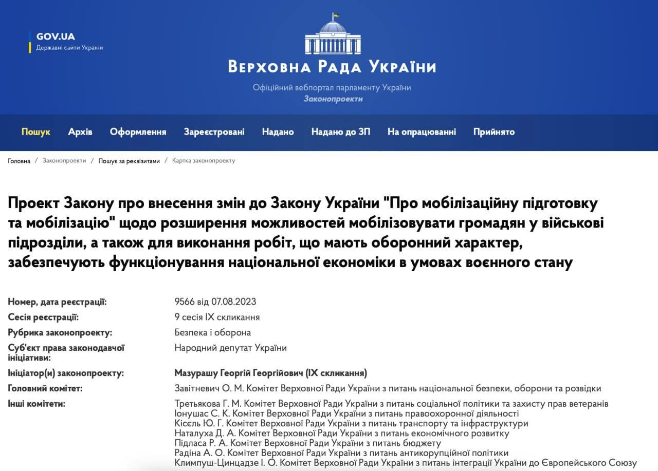Verkhovna Rada đệ trình để xem xét sửa đổi về việc huy động người Ukraine, những người sẽ được giao nhiệm vụ thực hiện "công việc phòng thủ".