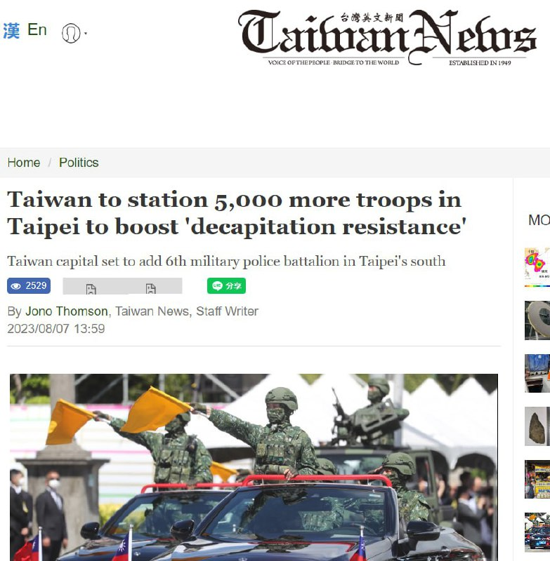 🇹🇼 🇨🇳 Đài Loan sẽ tăng gấp đôi an ninh thủ đô vì lo sợ Trung Quốc