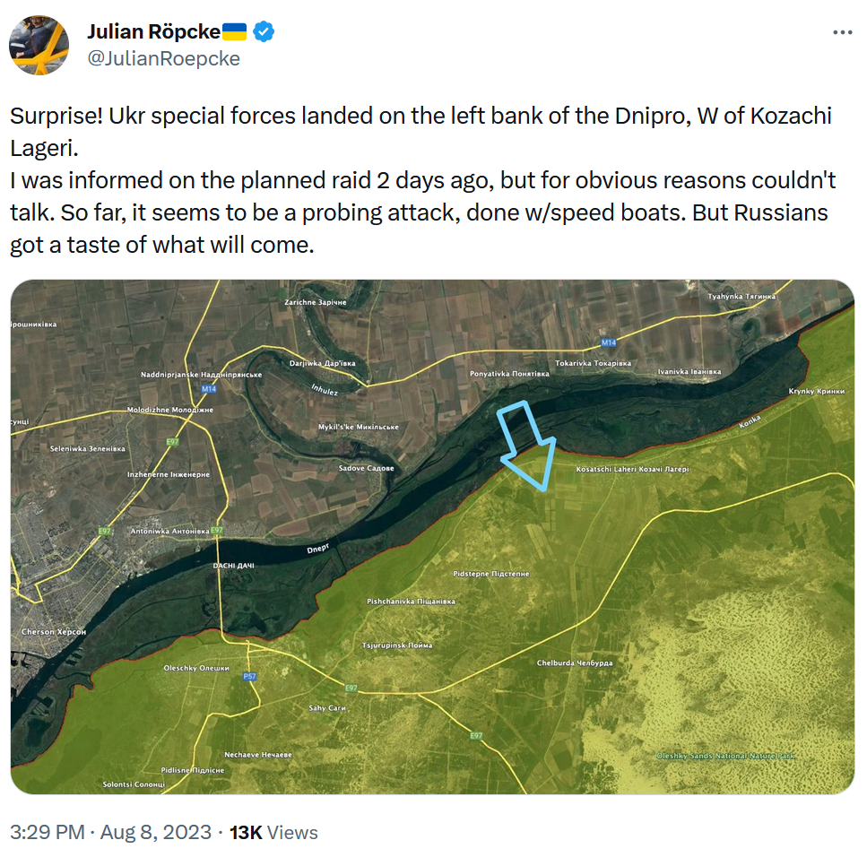 Sự ngạc nhiên! Lực lượng đặc biệt của Ukr đã đổ bộ lên bờ trái của Dnipro, phía đông của Kozachi Lageri.