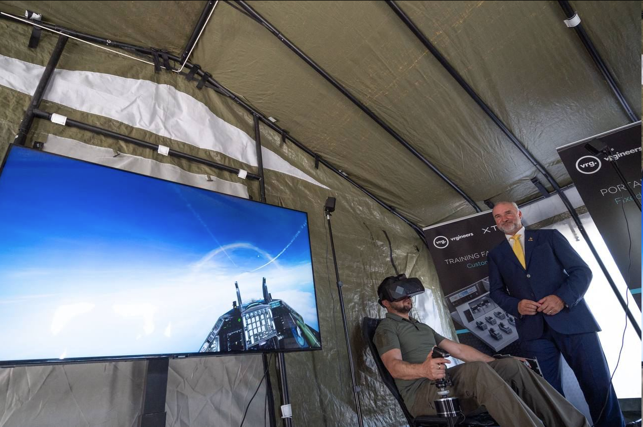 Ông đã chứng kiến hoạt động của buồng tập mô phỏng tiêm kích F-16 do Cộng hòa Séc cung cấp cho Ukraine để huấn luyện phi công. Sau đó, Tổng thống Zelensky thực hiện một nhiệm vụ bay giả lập, trong đó ông đã thực hiện khoa mục đánh chặn và bắn hạ một trong những mục tiêu ảo, chiếc máy bay ném bom Tu-95 của Nga.