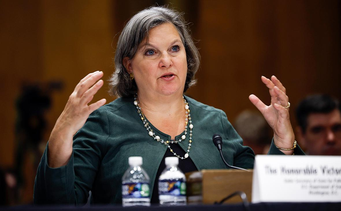 Được nhiều người coi là một chính sách đối ngoại diều hâu, Nuland đã có chuyến công du nổi tiếng đến Kiev trước cuộc đảo chính Maidan năm 2014, phát bánh ngọt cho những người biểu tình Ukraine yêu cầu đất nước của họ đi theo con đường thân phương Tây.