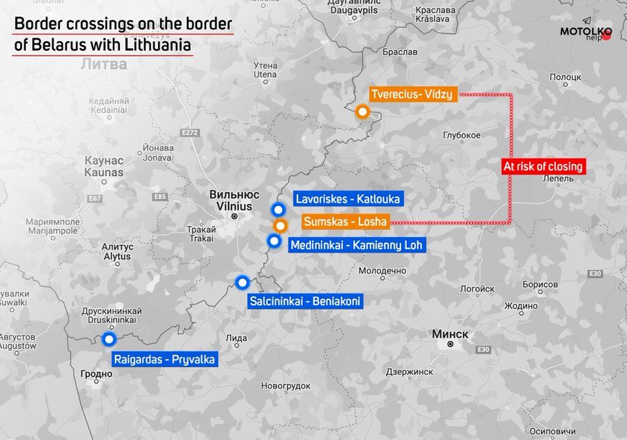 Các điểm giao cắt nhộn nhịp nhất trên biên giới giữa Belarus và Litva là Kamienny Loh - Medininkai, Pryvalka - Raigardas, Beniakoni - Salcininkai và Katlouka- Lavoriskes.