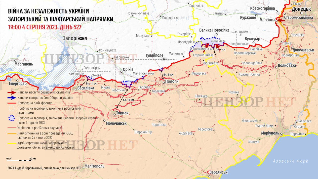 🗺 Bản đồ các hoạt động quân sự ở Ukraine tính đến ngày 4 tháng 8: ngày thứ 527 của cuộc chiến