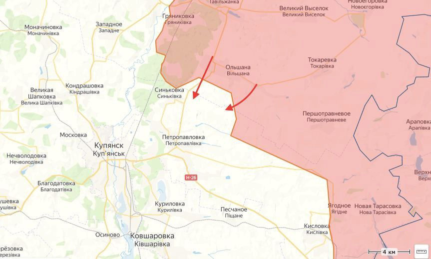 Với sự hỗ trợ của xe tăng, pháo binh và hàng không, 4 cứ điểm của AFU và 7 trạm quan sát đã bị chiếm, đồng thời tiêu diệt một đại đội dân quân Ukraine từ Sư đoàn 14 Ombre trong khu vực định cư Olshany