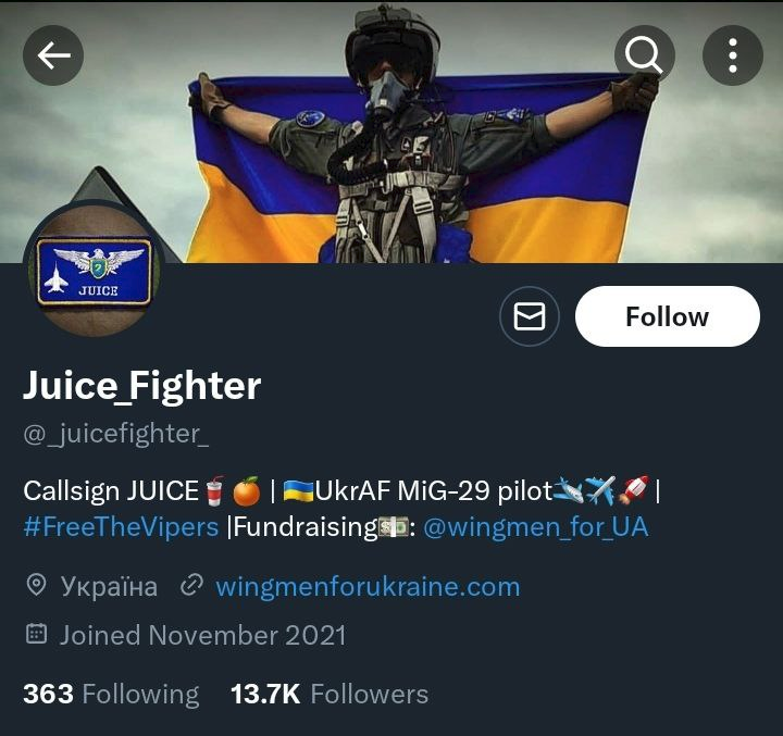 Một trong những phi công thiệt mạng là một phi công nổi tiếng trên "Twitter" với bí danh Juice_Fighter, người đang chờ đến lượt để huấn luyện trên chiếc F-16. 🔴 @DDGeopolitics