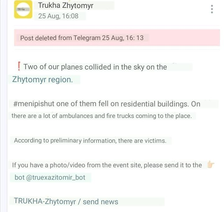 Kênh TG địa phương đã đưa tin về vụ việc nhưng nhanh chóng gỡ bỏ tin tức này. Đã có những thương vong được xác nhận trong số các phi hành đoàn của máy bay chiến đấu, bằng chứng là các bài đăng trên mạng xã hội.