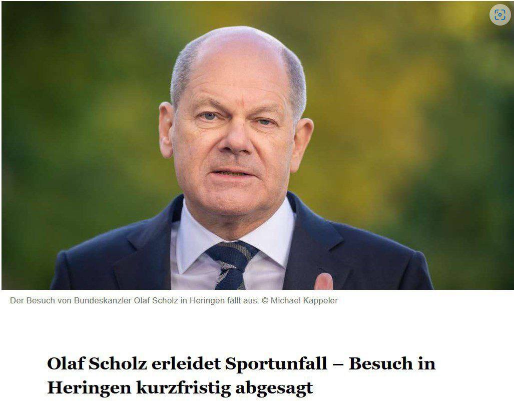 Thủ tướng Đức Olaf Scholz đã trở nên xấu trai hơn do hôn đường và đang hủy bỏ tất cả các sự kiện công cộng, Frankfurter Rundschau viết. Scholz được cho là đã bị ngã khi đang chạy bộ và hiện có những vết bầm tím trên mặt.
