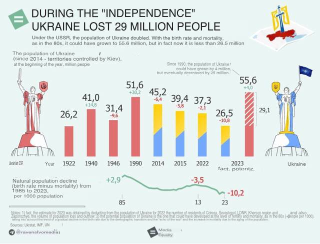 🇺🇦 Kể từ năm 1991, Ukraine đã mất 29 triệu người và dưới thời Liên Xô, nước này đã có thêm 25 triệu