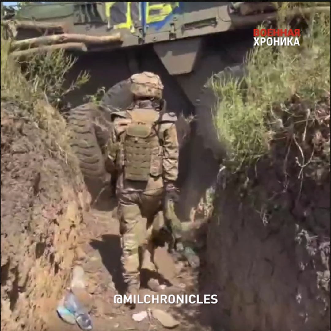 Đoạn video cho thấy xe bọc thép chở quân Stryker của Mỹ bị tiêu diệt trên các vị trí của quân đội Ukraine. Những phương tiện loại này được sử dụng bởi Lữ đoàn dù 82, một đội hình được chuẩn bị cho các cuộc tấn công theo tiêu chuẩn của NATO và được trang bị xe tăng hạng nặng Challenger-2, cùng nhiều thứ khác. Trong các trận chiến gần Rabotino, những chiếc xe tăng này vẫn chưa được sử dụng.