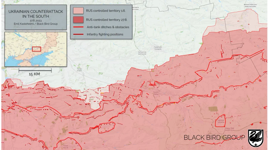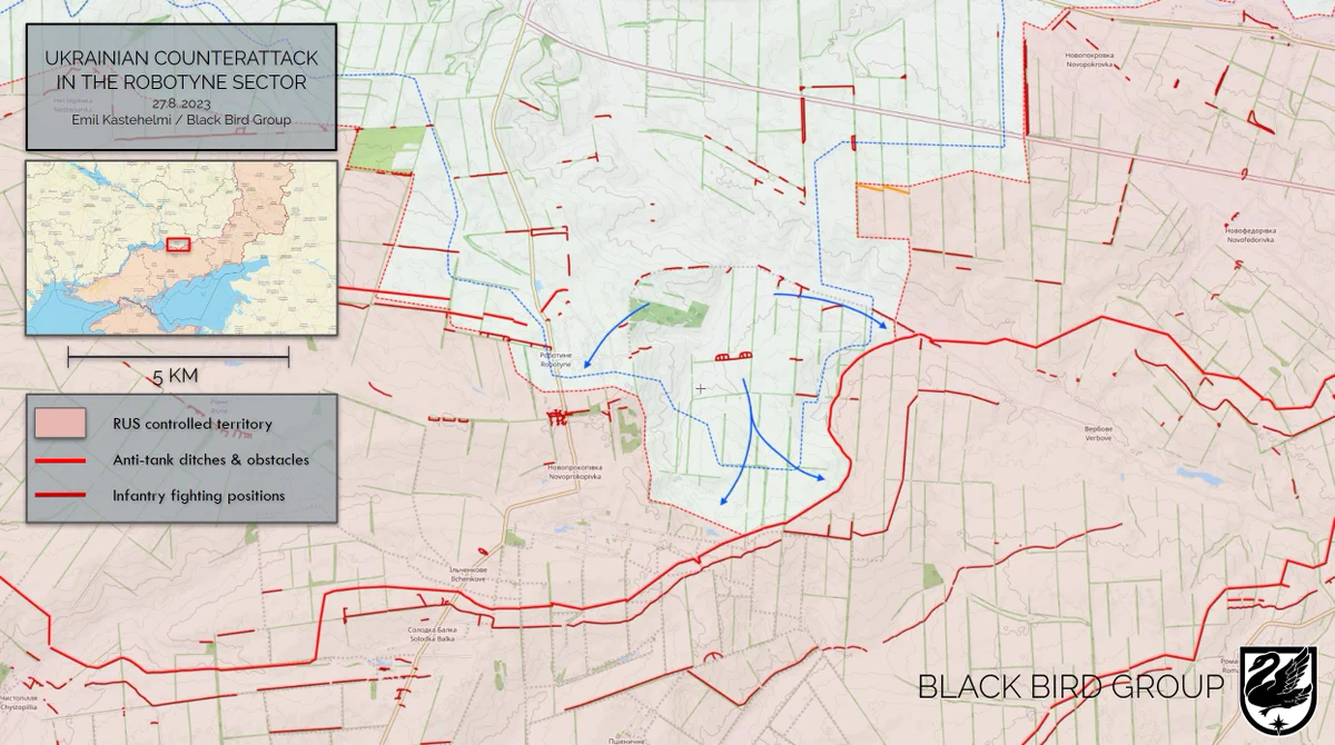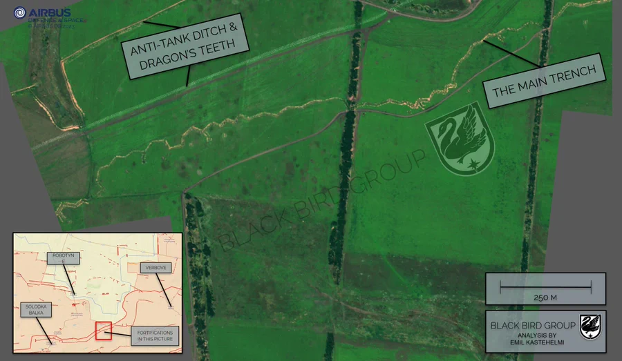 Chướng ngại vật kiên cố quan trọng đầu tiên nằm ngay bên ngoài Robotyne. Người Nga đã chuẩn bị hệ thống phòng thủ đáng gờm, bao gồm các vị trí bắn và hầm trú ẩn có mái che. Từ đây, người Nga có thể phòng thủ trước các cuộc tấn công từ cả phía bắc và phía đông.