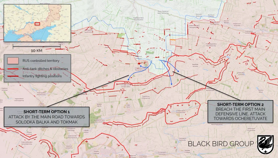 Các công sự kiên cố được xây dựng nhằm ngăn chặn bất kỳ bước tiến tiềm tàng nào trên con đường chính hướng tới Tokmak. Đây là một cách tiếp cận quan trọng nên việc bảo vệ nó là rất hợp lý. Tuy nhiên, khi tập trung vào phần này, người Nga có thể đã bỏ lỡ điều gì đó quan trọng.