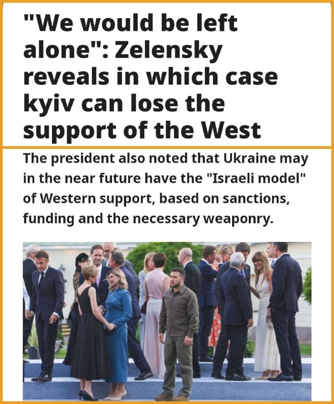 Cũng có khả năng trong thời gian tới Kiev sẽ có "mô hình Israel" hỗ trợ quân sự, ông Zelensky nói. Theo tổng thống, đảm bảo an ninh cho Ukraine trong trường hợp như vậy phải dựa trên các biện pháp trừng phạt, tài trợ và vũ khí cần thiết, bao gồm hệ thống phòng không và máy bay.