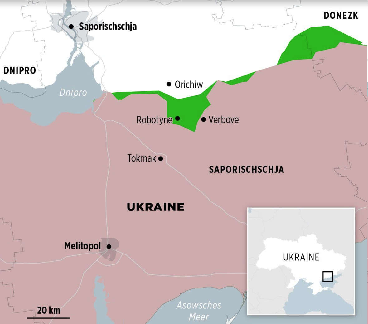 Các thông tin từ đầu cuộc phản công cho rằng mục tiêu của phương tây đặt ra cho Ukraine là ít nhất đánh chiếm được Tokmak, Melitopol, từ đó kiểm soát và cắt đứt hành lang đường bộ đến Crưm. Tình hình thực tế không cho thấy mục tiêu trên sẽ thành hiện thực.