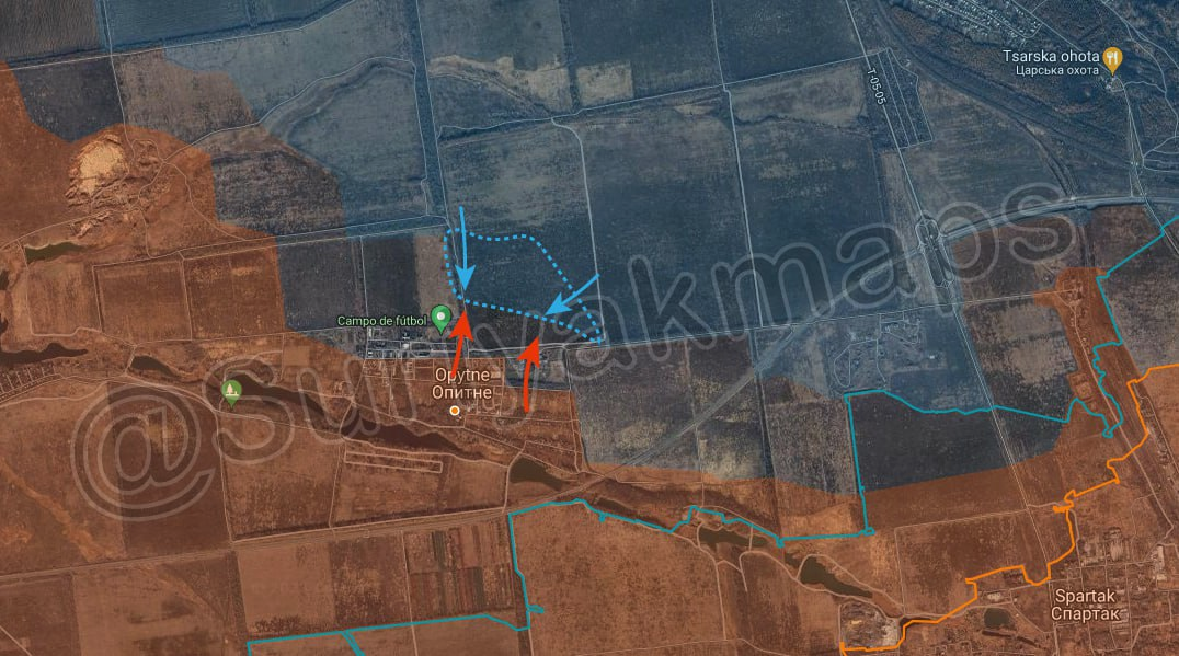 Tình hình phía bắc thành phố Donetsk: Quân đội Ukraine tiếp tục tiến về phía bắc Opytne/Опитне và tiến đến vùng ngoại ô gần đó của thị trấn, nơi đang diễn ra các cuộc đụng độ với Quân đội Nga.