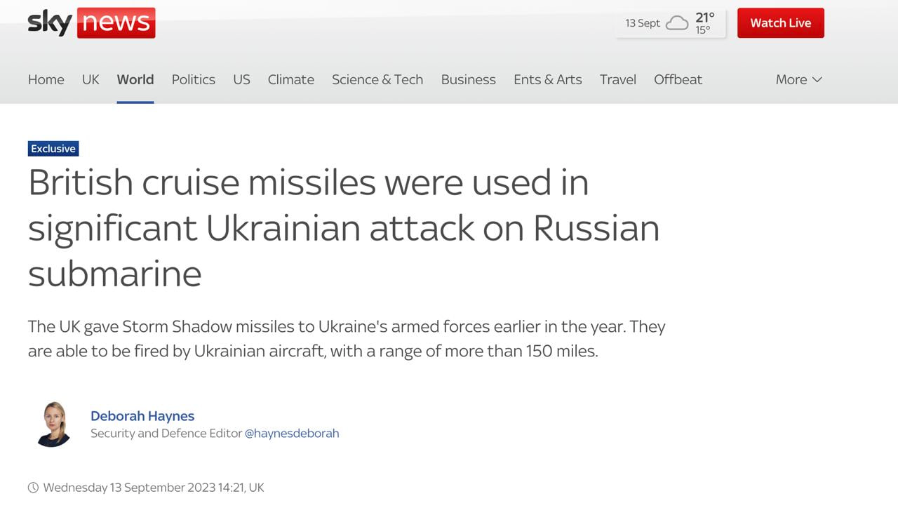 Kênh truyền hình Sky News xác nhận Ukraine đã sử dụng tên lửa Storm Shadow của Anh để tấn công Sevastopol.