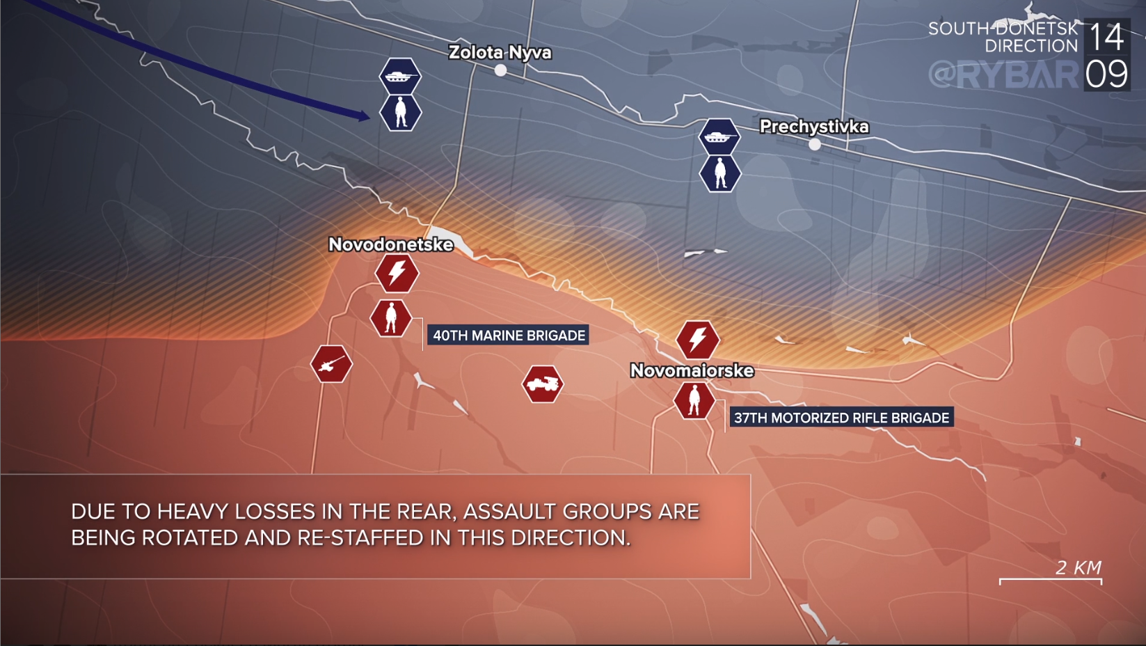 ▪️Tại khu vực Vremyevsky của mặt trận, sau những nỗ lực đánh chiếm các làng Novomayorskoye và Novodonetskoye không thành công, kẻ thù đã chuyển sang thế phòng thủ. Do tổn thất lớn ở phía sau, các nhóm tấn công theo hướng này đang được luân chuyển và tái trang bị.
