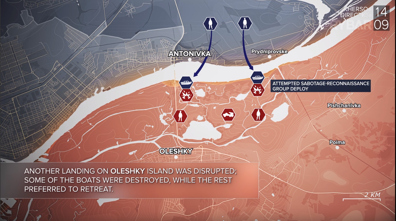 ▪️Theo hướng Kherson, Lực lượng vũ trang Ukraine tiếp tục cố gắng giành được chỗ đứng ở tả ngạn sông Dnieper. Một cuộc đổ bộ khác lên đảo Aleshkinsky bị gián đoạn, một số tàu thủy bị phá hủy, số còn lại chọn cách rút lui.