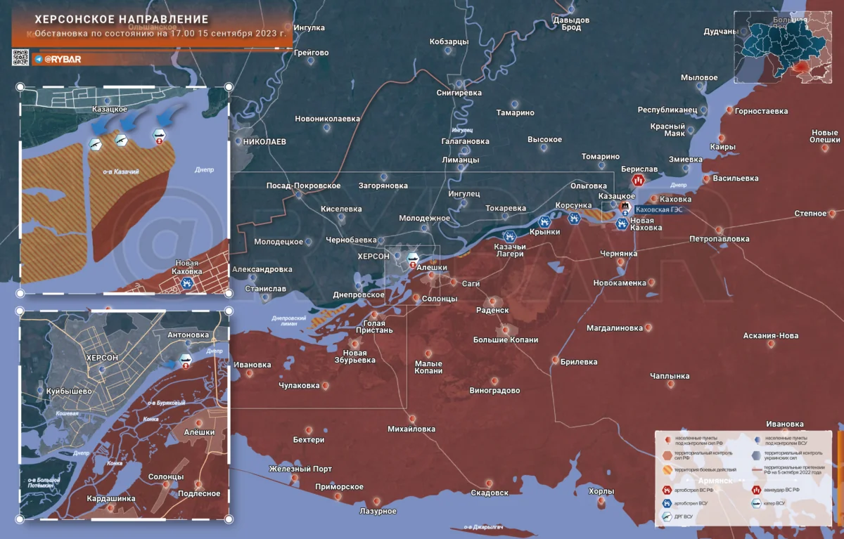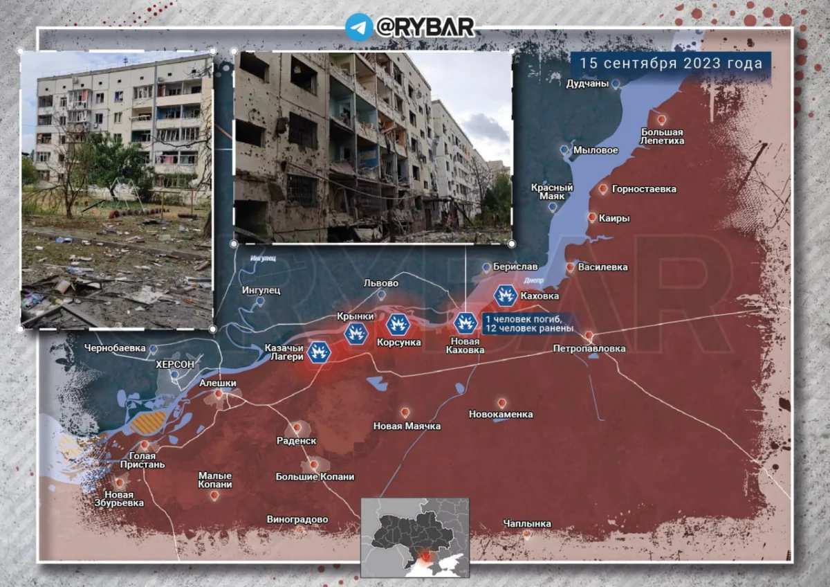Ngoài việc tăng cường hoạt động trên các hòn đảo ở đồng bằng Dnieper, các đội hình của Ukraine còn tiếp tục pháo kích khủng bố các khu định cư ven bờ của vùng Kherson. Khu dân cư Novaya Kakhovka bị cháy lớn: 4 tòa nhà chung cư bị hư hại đáng kể. Một người thiệt mạng và ít nhất 12 người khác bị thương. Ngoài ra, đêm qua địch còn bắn vào Kakhovka, Trại Cossack, Krynki và Korsunka.
