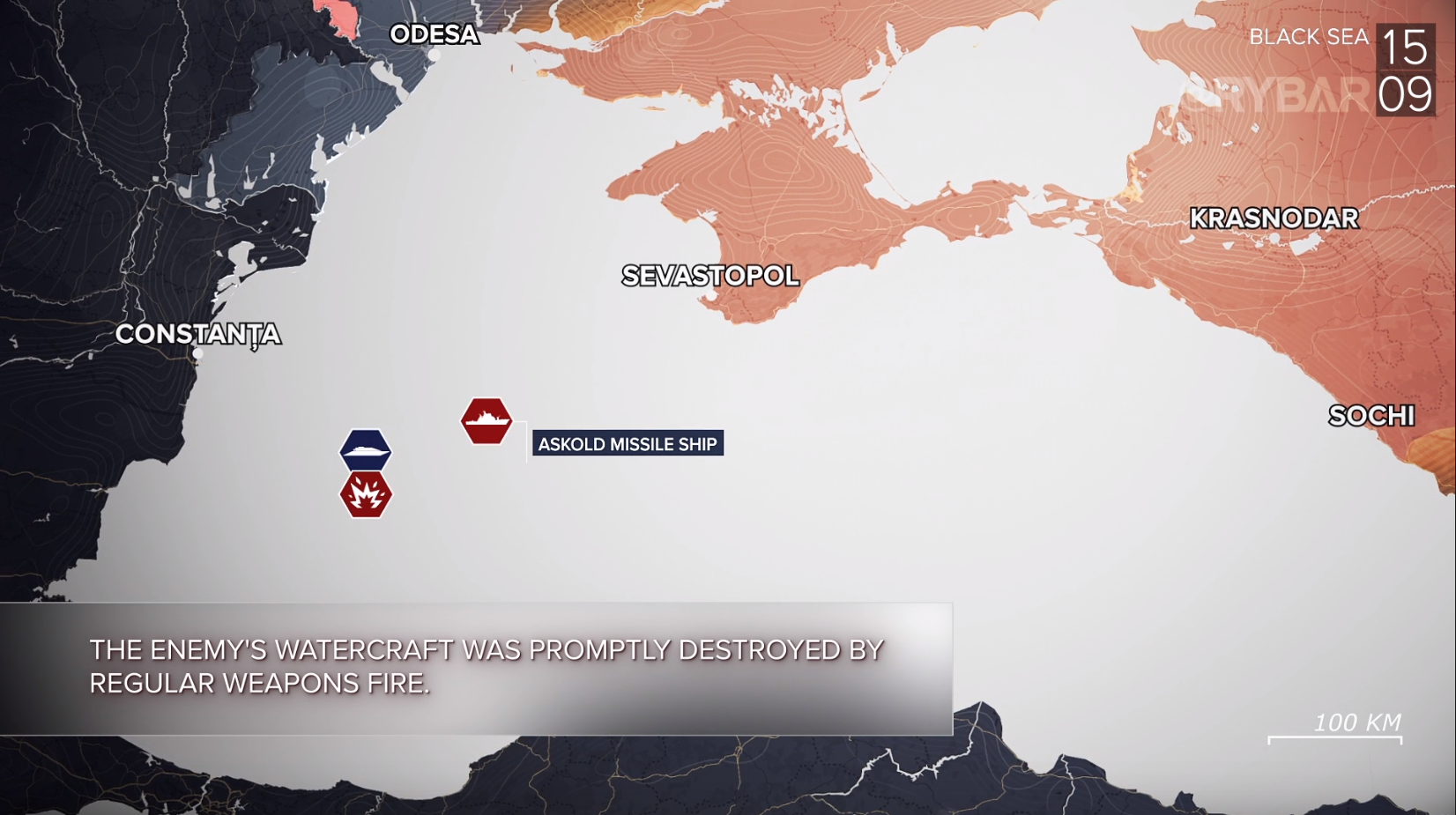 ▪️Ở phía Tây Nam Biển Đen, tàu tên lửa nhỏ Askold của Nga đã phát hiện ra một chiếc thuyền không người lái của Lực lượng Vũ trang Ukraine. Phương tiện của kẻ thù đã nhanh chóng bị tiêu diệt bởi hỏa lực từ vũ khí trên tàu.
