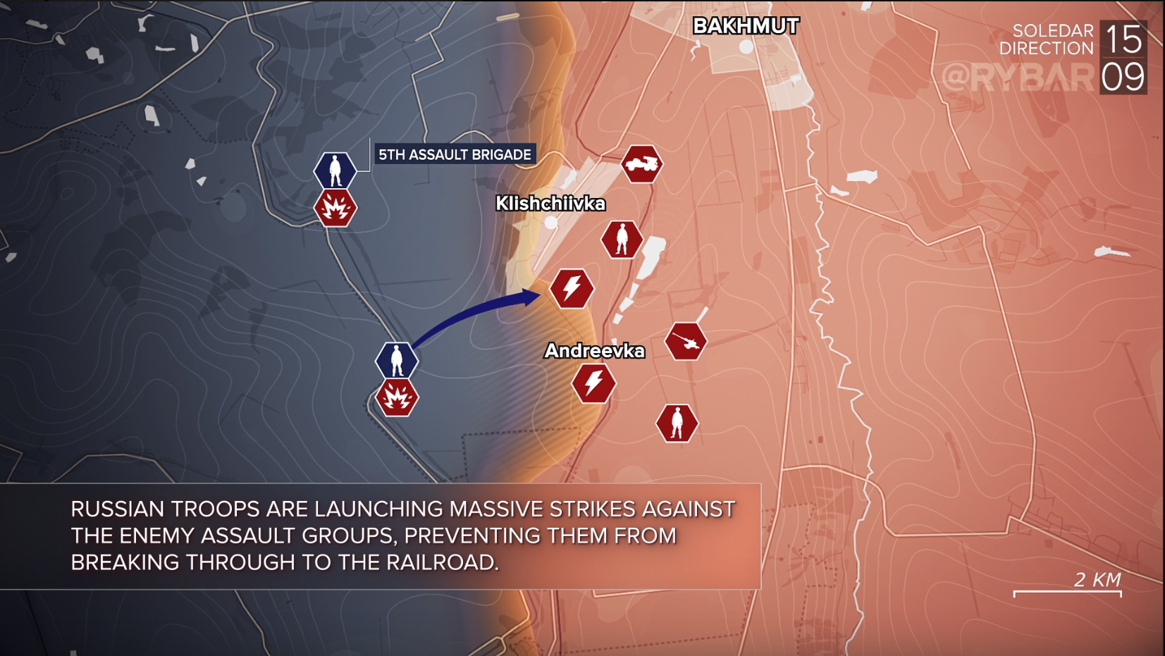 ▪️Ở sườn phía nam của tuyến phòng thủ Bakhmut, Lực lượng vũ trang Ukraine tiếp tục cố gắng mở rộng vùng kiểm soát gần Kleshcheevka và Andreevka. Quân đội Nga đang tiến hành các cuộc tấn công lớn vào các nhóm tấn công của kẻ thù, ngăn cản chúng đột phá vào tuyến đường sắt.