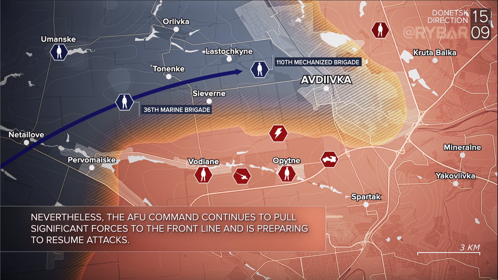 ▪️Trong khu vực Avdeevsky, cuộc giao tranh ở phía bắc Opytnoye cuối cùng đã có được tính chất thế trận. Tuy nhiên, Bộ chỉ huy Lực lượng Vũ trang Ukraine vẫn tiếp tục điều động lực lượng đáng kể ra tiền tuyến và đang chuẩn bị nối lại các cuộc tấn công.