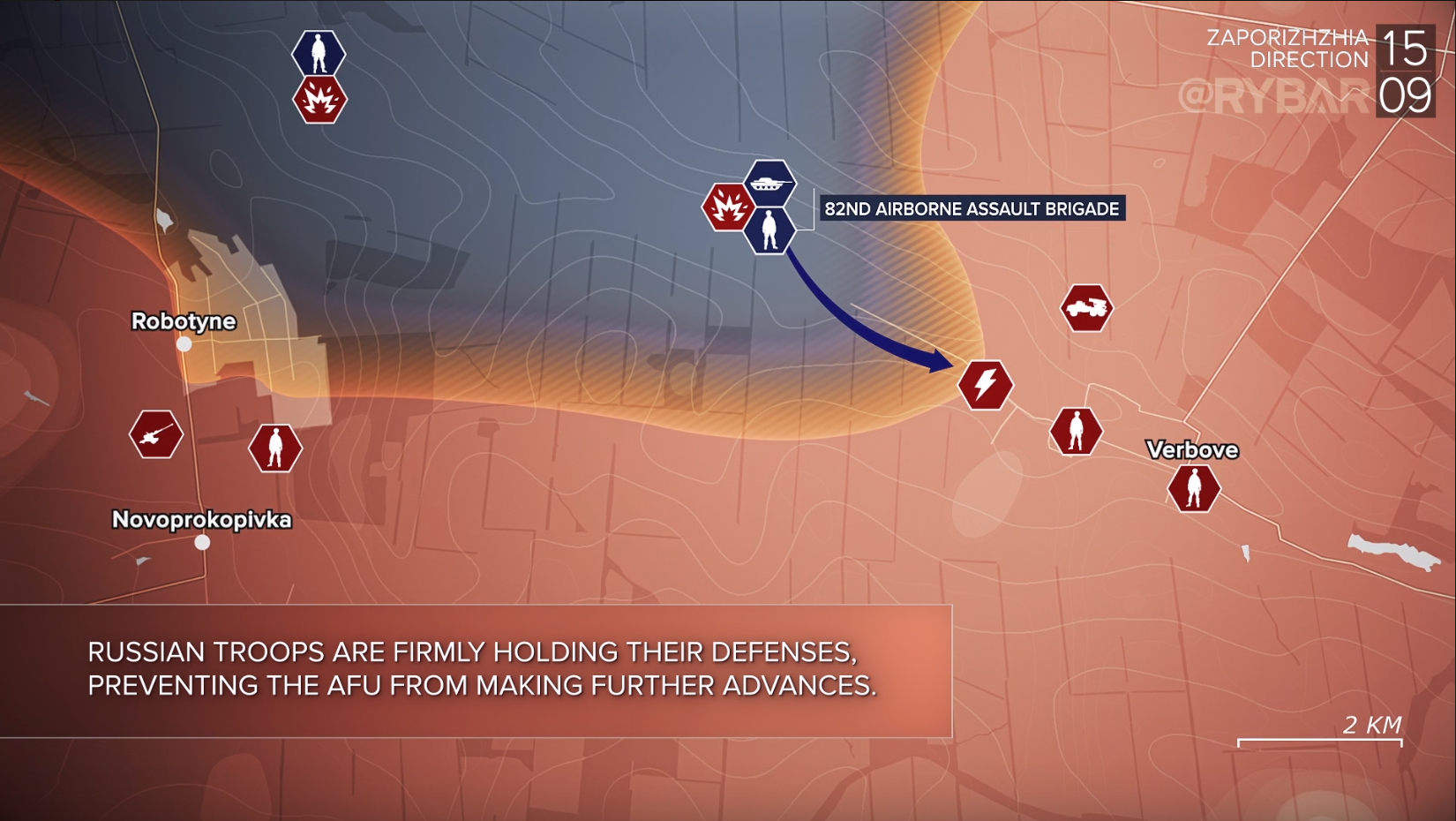 ▪️Các cuộc tấn công của đội hình Ukraina tiếp tục diễn ra ở khu vực Orekhovsky theo hướng Verbovoy. Quân Nga tự tin trấn giữ thế trận, ngăn chặn lực lượng vũ trang Ukraine tiến sâu hơn.
