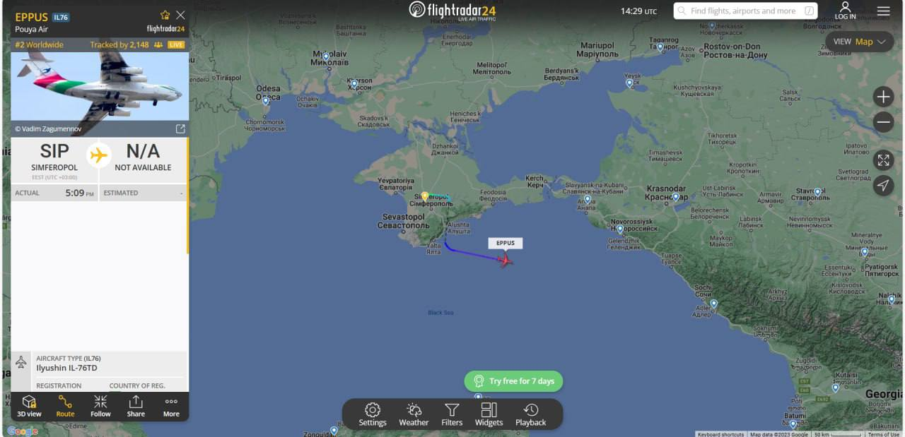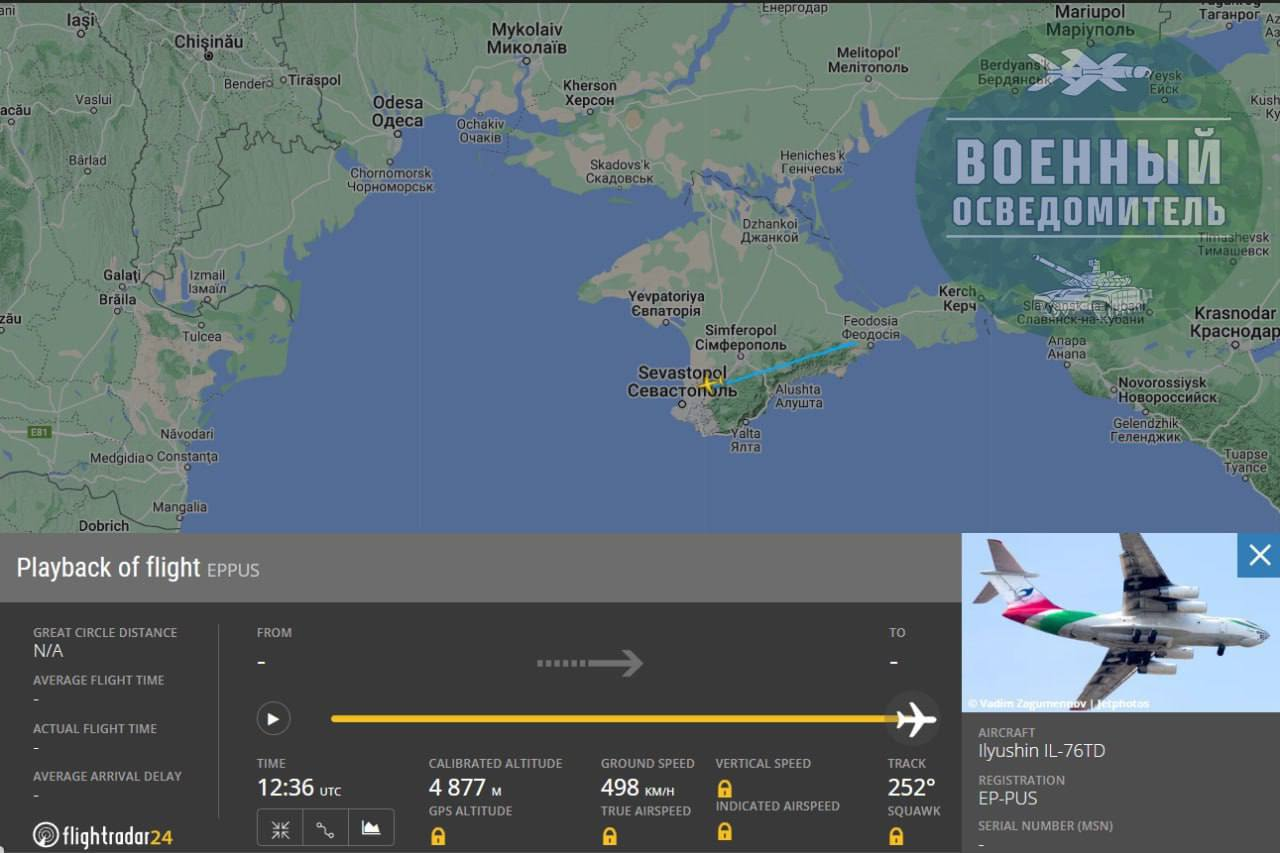 Theo báo cáo, chiếc Il-76TD EP-PUS của IRGC thực sự đã ở Crimea và ở trên bán đảo này trong khoảng hai giờ. Theo trang web Flightradar24, máy bay cất cánh từ sân bay quốc tế Simferopol lúc 17h09 rồi đi về phía nam nước Nga.