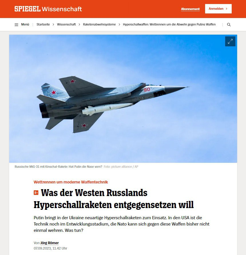 Nga có Kinzhal và Avangard, Trung Quốc có tên lửa DF-ZF đang được phát triển. Der Spiegel viết: Mỹ vẫn đang tụt hậu trong việc sản xuất tên lửa siêu thanh của riêng mình, Dark Eagle. “NATO đang ngày càng lo ngại” và tình hình ở Ukraine cho thấy liên minh “vẫn chưa tìm được phương tiện phòng thủ trước những loại vũ khí này có thể khiến toàn bộ khu vực bị đóng cửa”.