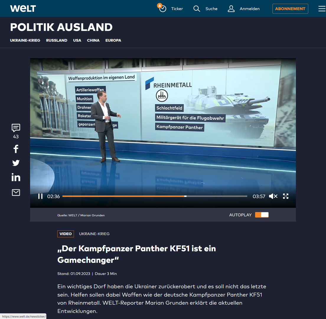 🇩🇪🇺🇦 Ấn phẩm Die Welt của Đức đã đăng tải video thử nghiệm xe tăng Panther KF51 mới nhất. Mặc dù phương tiện này thậm chí chưa được sản xuất hàng loạt nhưng các tác giả đã gọi khả năng giao nó cho chế độ Kiev là một "bước ngoặt" trong tình hình chiến sự.