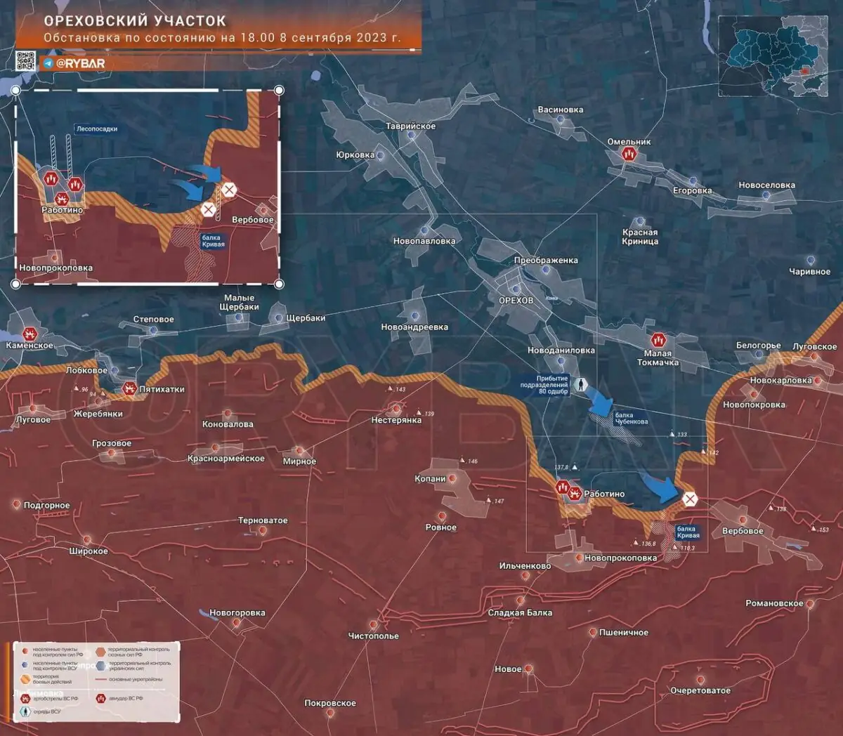 🇷🇺🇺🇦 Khu vực Orekhovsky: cố gắng tiến vào Rabotino và húc đầu vào Verbovoy - Tình hình tính đến 18h00 ngày 8 tháng 9 năm 2023