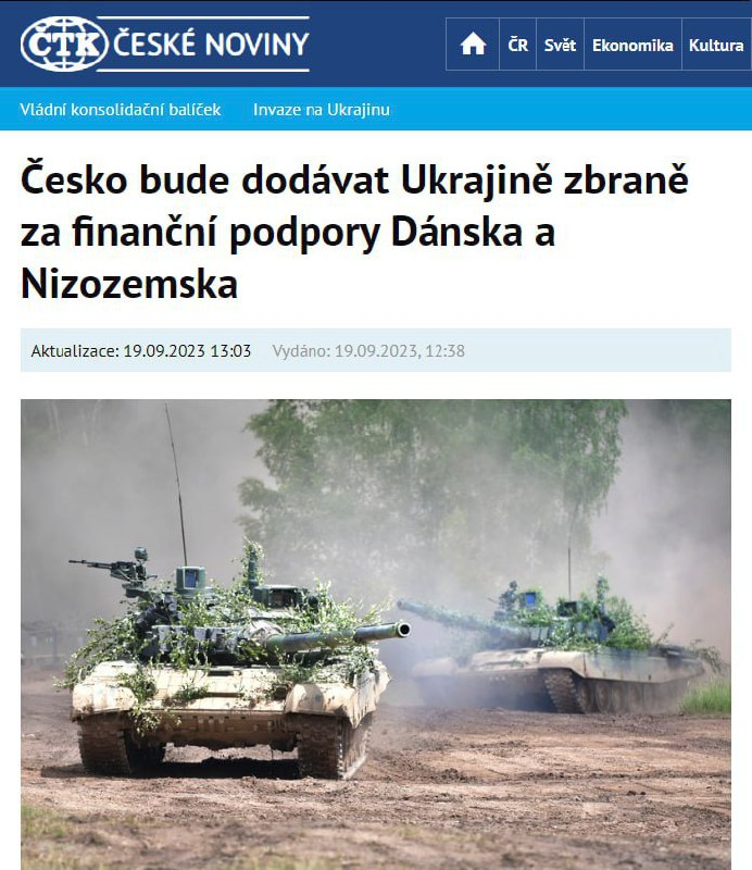 📝 “Chúng tôi đang nói về việc cung cấp thêm xe tăng, pháo, vũ khí nhỏ, xe chiến đấu bộ binh, hệ thống phòng không, thiết bị tác chiến điện tử hoặc đạn dược từ các công ty trong ngành công nghiệp quốc phòng của chúng tôi,” Thứ trưởng Bộ Quốc phòng Séc Daniel Blazkovec cho biết.