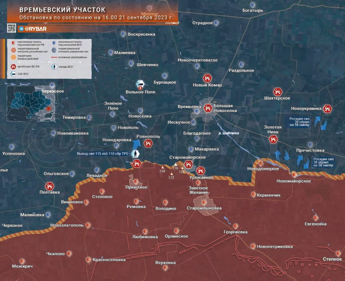 Sự yên tĩnh tương đối vẫn tiếp tục ở địa điểm Vremevsk. Các đội hình của Ukraine đang tích cực luân chuyển đội hình và bù đắp tổn thất để tiếp tục cuộc tấn công.