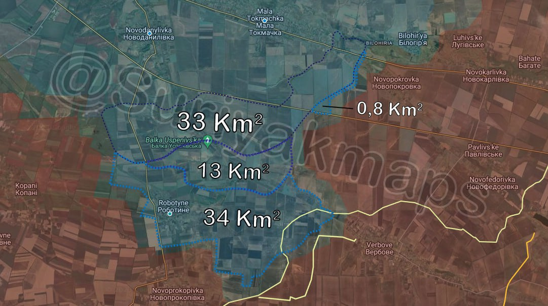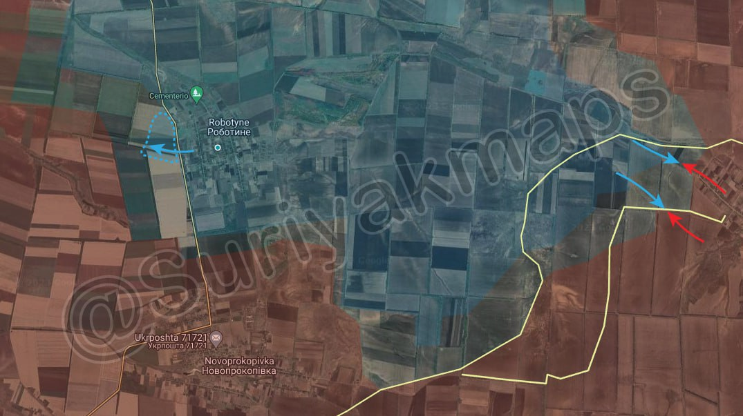 Tình hình trên mặt trận Zaporizhia: Quân đội Ukraine tiến bộ nhỏ về phía tây Robotyne/Роботине. Ngoài ra, quân đội còn mở cuộc tấn công mới vào Verbove/Вербове và bị Quân đội Nga đẩy lùi.